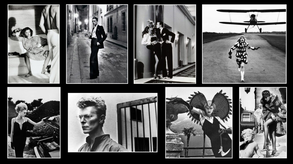Helmut modifica il suo cognome originale, Neustadter, in Newton che è la traduzione letterale dal tedesco all’inglese, e apre a Melbourne un piccolo negozio di fotografia. Si trasferisce a Parigi nel 1961 e comincia quasi subito a lavorare per French Vogue. Inizia così la sua lunga carriera in ambito fotografico. Helmut Newton manifesta sin da subito il suo interesse per il corpo e in particolare per quello femminile, scattando foto anche dal forte contenuto erotico, ma sempre con un intento ludico ed ironico. Collabora con importanti riviste come: “Vogue”, “Marie Claire”, “Elle” “Playboy”, “Vanity Fair” e “GQ”. Esibisce i scuoi scatti in mostre in giro per il mondo a New York, Parigi, Londra, Houston, Mosca, Tokio, Praga e Venezia. Nel 1976 pubblica il suo primo volume di fotografie “White women”, e nel 1996 il ministro della cultura francese gli concede il titolo di Gran Commendatore delle arti e delle lettere.