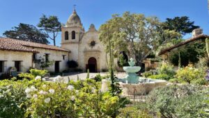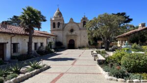 Nella periferia della cittadina si trova la “Carmel Mission”, definita la più bella tra tutte le 21 esistenti. È un monumento storico nazionale degli USA ed attira visitatori interessati alla storia ed all’architettura coloniale spagnola, pellegrini religiosi e semplici turisti. È ufficialmente conosciuta come Missione San Carlos Borroméo de Carmelo e fu fondata nel 1771 dal frate francescano Junipero Serra. Si possono visitare la chiesa, i magnifici giardini esterni e gli ambienti interni da cui è stato ricavato un museo con la storia della vita di Serra e della missione stessa.