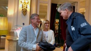 E per non farci mancare niente, altra emozione: Jambo incontra per caso il famoso e grande ex giocatore di basket dell’Olimpia Armani, al tempo Simmenthal, e suo amico: Arthur Kenney, ormai 77enne ancora in ottima forma. Proprio ieri davanti al Palalido, Giuliano Airoldi ci ha parlato di lui! Kenney, che attualmente vive a Manhattan, accetta simpaticamente di fermarsi a bere un caffè con noi nella sala del Grand Hotel e ci delizia con i suoi racconti.