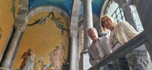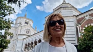 Giornata molto emozionante quella di oggi. La prima parte è dedicata al grande compositore Giuseppe Verdi. Andiamo dapprima a visitare la sua cripta che si trova all’interno della splendida ”Casa di Riposo per Musicisti”, di stile neogotico, fortemente voluta e fondata proprio da lui, il 16 dicembre1899 situata in Piazza Buonarroti. Nella cripta Verdi riposa accanto alla sua seconda moglie Giuseppina Stepponi. Al centro della piazza, dal 10 ottobre 1913 si trova la sua statua. L’opera è dello scultore Enrico Butti e fu voluta dall’Ordine dei Giornalisti.